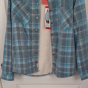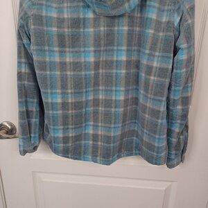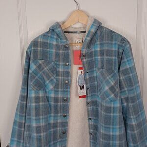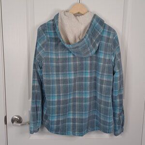 Soho Threads Plaid Corduroy Shacket Women M Blue Sherpa Lined Hooded Y2K Grunge