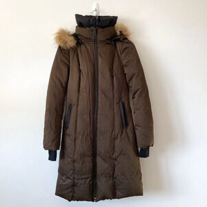 Soia & Kyo BROWN Down Racoon Fur Hood Long Christy Parka Jacket Coat Sz S