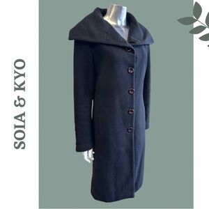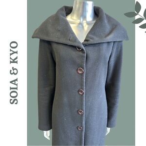 Soia & Kyo Black Wool Blend Slim Dress Coat Oversized Collar lined Size Medium