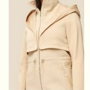 Soia & Kyo Enora jacket. Spring. Quilted parts. Hood. Cream/tan Size L.