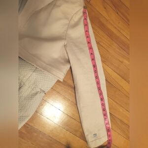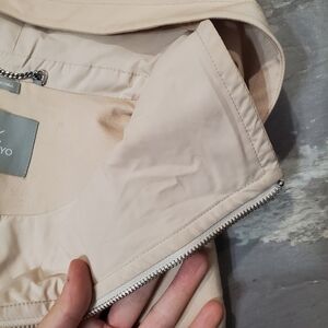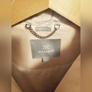Soia & Kyo Enora jacket. Spring. Quilted parts. Hood. Size L, see pictures for measurements. Color is called "Sand" which looks like a creamy light tan. Closes at the front with a zipper. Classy. Subtle stains as seen on pictures (mostly on the inner collar). No hole, no rip. Non smoking house.