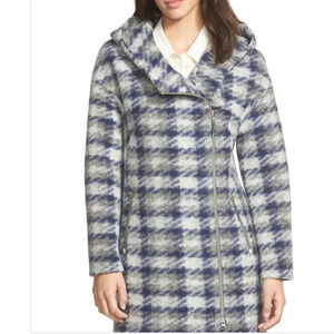 Soia & Kyo Kym Wool Blend Check Plaid Zip Jacket Hooded Coat Sz Medium