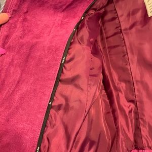 Bright pink suede jacket in size small. Its in very good condition with some minor wear on the shoulders.