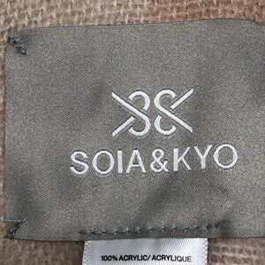 Soia and Kyo scarf or wrap with fringe and raw hem. Super soft and warm! Great for dinner out or sitting by the fire. Wear with jeans or a dress! Very versatile. Colors are a pale pink and other pink shades as well as cream or a light beige.