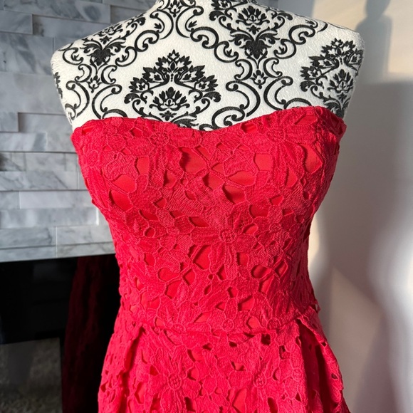 Soieblu Strapless Lace Floral Embroidered Cocktail Party Dress Red S
