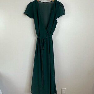 Soieblu Women’s Medium Dark Green Wrap Deep V Formal Dress Maxi Gown Bridesmaid