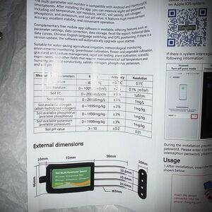 For gardeners! Soil multi-parameter sensor with USB cable. Never used. Originally $90 USD. Not compatible with IOS devices.