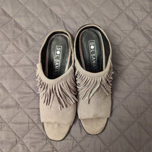 Sol Sana Suede Fringe Mule Size 39 in Beige