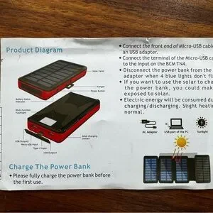 Solar Charger Power Bank. Use for camping or biking to charge your devices. Never used. Original box & instructions. Was $60 new.