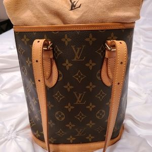 Louis Vuitton bucket pm, excellent condition. One small water mark in 3rd picture. Some pen marks inside. No stickiness, no peeling. No cracks in canvas.