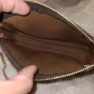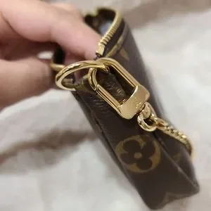 @aman1519 hi there. The dimensions are 5.5 x 3.5 x 0.8. It comes with original chain as it is brand new. The chain only detaches on one side.
