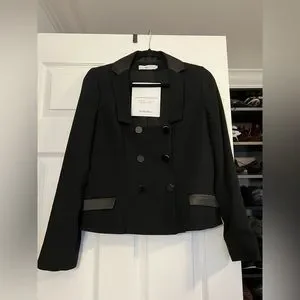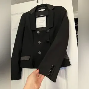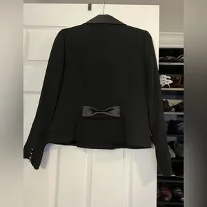 Cropped jacket blazer. Square neckline. Black satin accent in back that looks like a bow. Very beautiful piece. Very good condition. Size 40 France. Can be worn by a M or a L