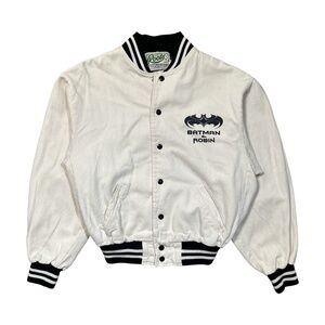 Vintage 90s Roots Batman & Robin Movie 1997 Cotton Fleece Bomber Jacket Mens S