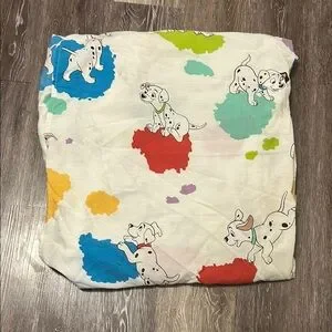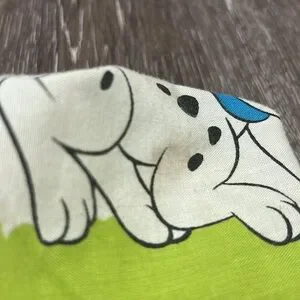 Vintage Twin Disney Dalmatian Sheet. Note• Elastic needs replacing and has some light staining throughout. Would be great for up-cycling into clothing.