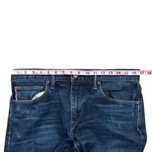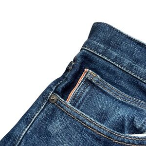 Used in very good condition. Thread snag by the left pocket. Split on the hem on the left inside cuff. Inseam hemmed to 28.5