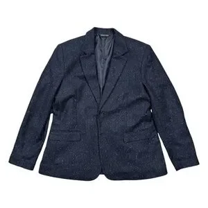 Kirrin Finch Androgynous Navy Stardust Wool Silk Blend Blazer Womens Large