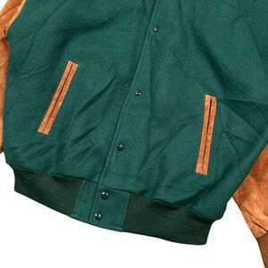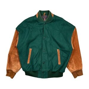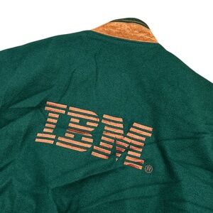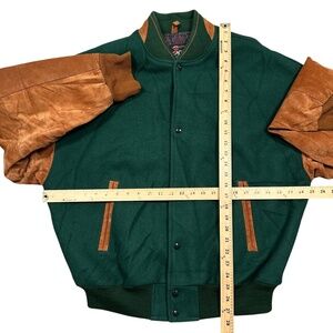 Vintage 90s IBM Suede Leather Wool Green Brown Bomber Jacket Mens XL