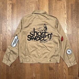 Sabrina Carpenter Short n Sweet Tour VIP Tan Canvas Jacket Unisex Large