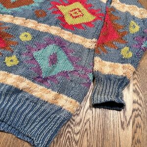 Vintage 90s Structure Ramie Cotton Southwestern Aztec Faded Sweater Mens XL