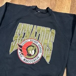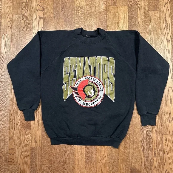 Vintage 90s Ottawa Senators 1991 Logo NHL Fleece Sweatshirt Black Mens Medium