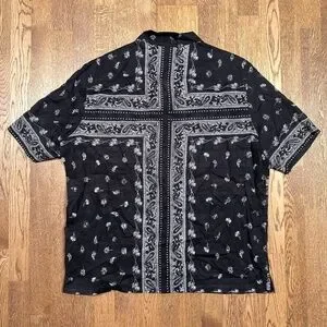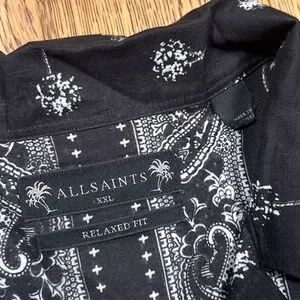 All Saints Pima Cotton Bandana Lightweight Relaxed S/S Button Shirt Mens 2XL