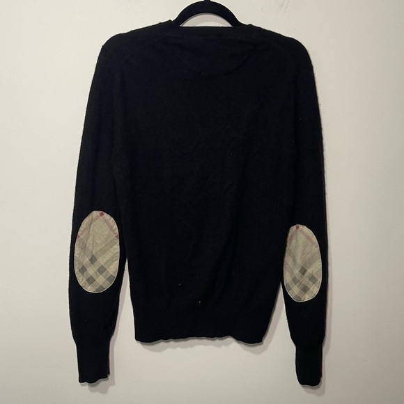 Burberry Brit Men’s Black crewneck elbow patch 100% cashmere sweater in size M
