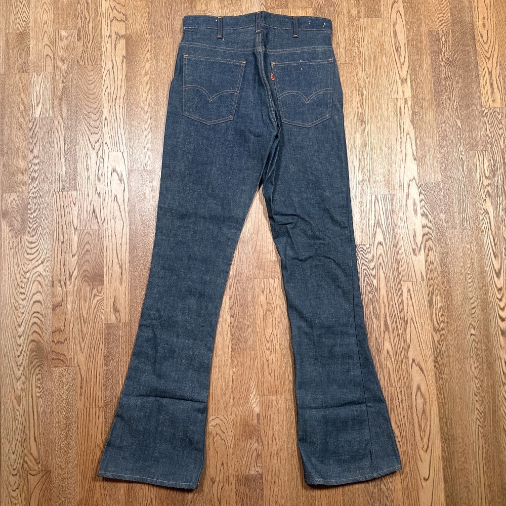 Vintage 70s Levi's 646 0917 Orange Tab Bell Bottom Flare Raw Denim Jeans Mens 31 New without tags. Raw, unwashed. A few small imperfections in the threading from the factory. Some minor distressing on the right knee from storage creasing. Country of Origin: Unknown Tag Size: Mens 31 (see below for actual measurements) Measurements (in INCHES): Waist: 32 Inseam: 36 Leg Opening: 10 Front Rise: 11.5 Length of outer seam: 46 To ensure best fit, measure against a piece that you already own.