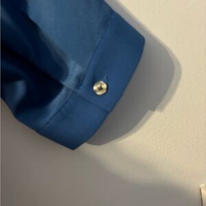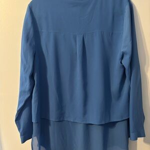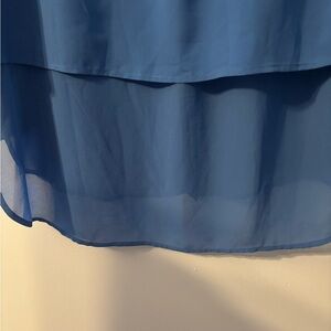 Airy blue blouse with layered design. Lightweight and stylish. Ideal for versatile wear. PTP 23 L 22 on the solid layer 29 to the sheer 100% polyester