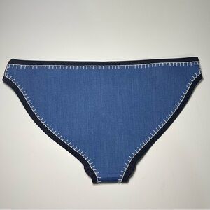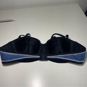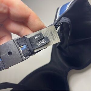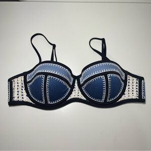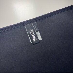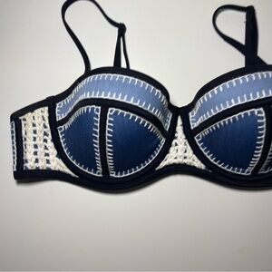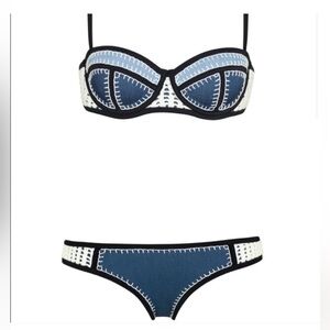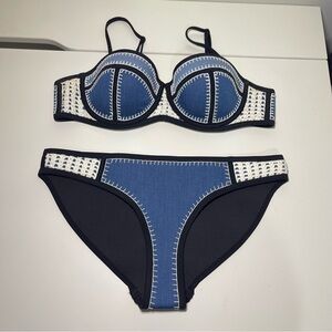 Triangl bikini, neoprene swimwear, crochet trim bikini, blue black swimsuit, summer beachwear, designer swim set, pool party outfit, chic swimwear, festival bikini, luxury bathing suit, boho chic swim