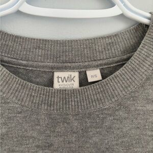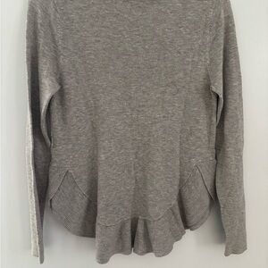 Lightweight knit long sleeve top by Twik. Features a heather gray design. PTP 16 to 19 L 24 65% viscose 35% nylon