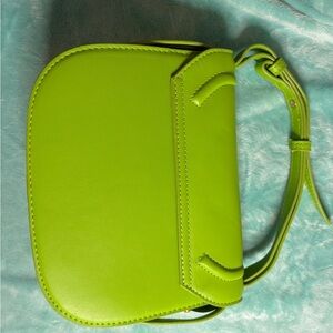 Brighten your look with this stylish lime green hand bag. Perfect for any occasion. (Strap is uniquely wrapped around the purse , does not adjust for shoulder strap.
