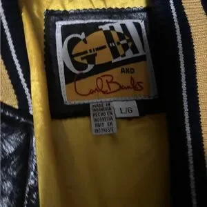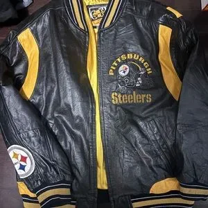 Support the Pittsburgh Steelers with this stylish varsity jacket. Featuring bold black and yellow colors, it's perfect for any fan looking to stay warm and fashionable.
