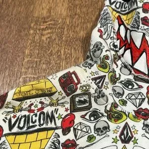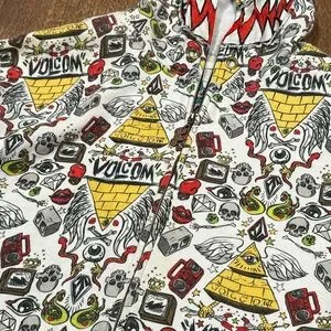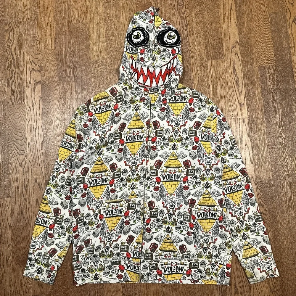 Vintage Y2K Volcom Ryan Sheckler All Over Print Monster Mask Zip Hoodie Mens XL