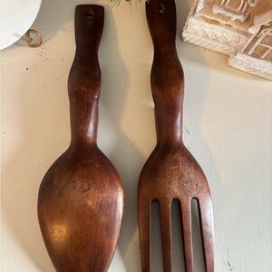 Add a rustic charm to your dining decor with this beautifully crafted wooden fork and spoon set. 12.5 inches long