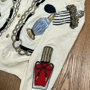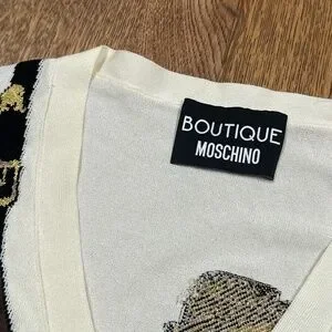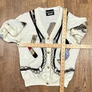Boutique Moschino FW 2021 Make Up Print Viscose Cardigan Sweater Womens 14
