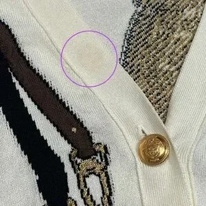 Used in very good condition. Spot on the collar. Small loose threading on the collar. A few small spots here and there.