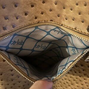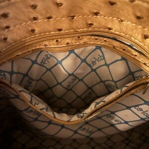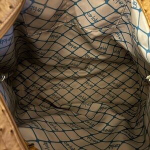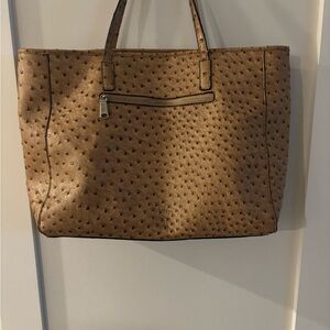 This tan tote bag is a versatile accessory for any wardrobe. Its stylish design and ample space make it ideal for daily use. Perfect condition. 19x12” Vegan ostrich