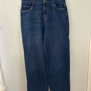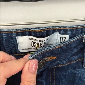 Stylish dark blue flare jeans by Refuge. Perfect for a chic look. Size 7 Waist 16.5 Rise 12 In 31 Wide leg