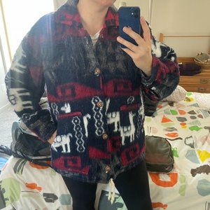 (Sold)| Oversized Aztec Print Llama Blanket jacket