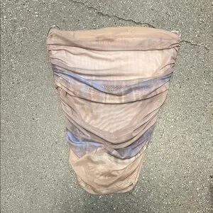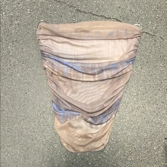 Stylish ruched tube top featuring a blend of beige and blue hues. Perfect for summer