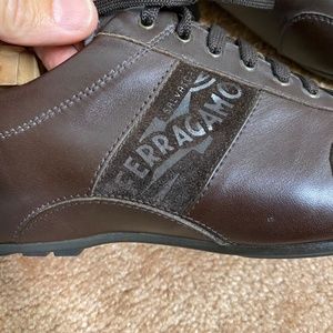 Salvatore Ferragamo 9.5 EE brown leather casual sneaker shoes Italy