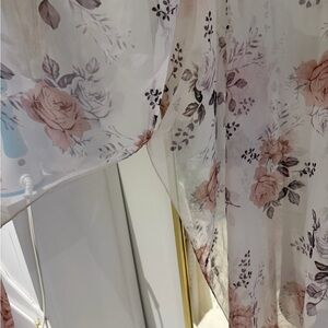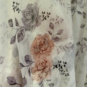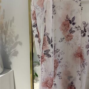 Beautiful white chiffon kimono with soft pink and gray/lavender roses.