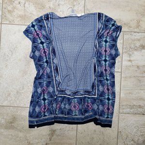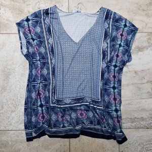 The loose cut of this V-neck top will have you feeling relaxed while the flattering pattern frames your silhouette. Great for adding a splash of fun to your casual summer wardrobe.