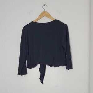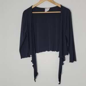 Soleil Black Long Sleeve Shoulder Cover Up V-Neck Cropped Tie-Front Cardigan L