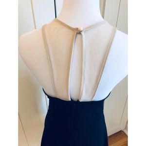 Sexy Black Fit And Flare Dress by Solomio. Features a sexy mesh cutout bust and back. Only worn a few times, in excellent condition. Size medium. Material has stretch.