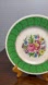 Vintage Solian Ware Simpson Potters green floral dinner plate in an English Chinoiserie style, measuring 10.5 inches. This English-made ceramic plate features a vibrant green border with an ornate Chinoiserie pattern, complementing a central bouquet of colorful floral designs, including classic pink roses, yellow daisies, and blue and purple accent flowers.