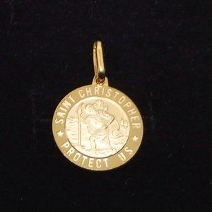 High Quality Solid Real Gold St Christopher Protection Pendant