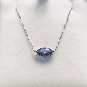 Solid 10K White Gold Tanzanite & Diamond Eye Necklace