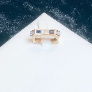 Solid 14K Yellow Gold Diamond & Sapphire Ring