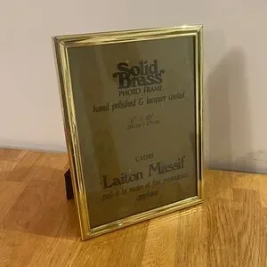Elegant solid brass photo frame. Hand polished and lacquer coated. Perfect for 8" x 10" photos. Glass insert. Stand or hang.